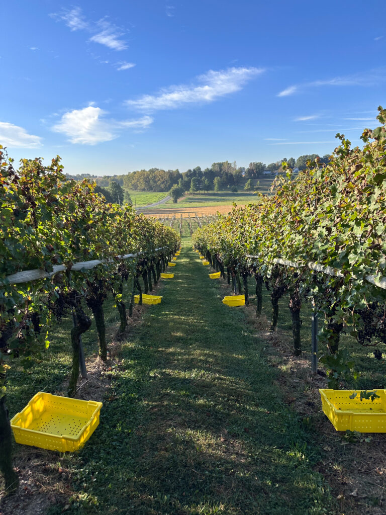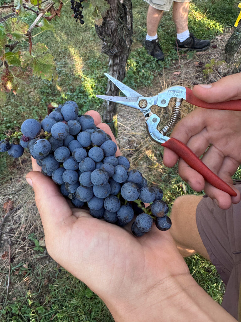 Hand-harvesting is honest work. You’re outside, moving between the vines, cutting clusters, and carefully placing them in bins. It’s repetitive but rhythmic. There’s something satisfying about each cluster cut being one step closer to becoming the wine that will bear this vintage year.