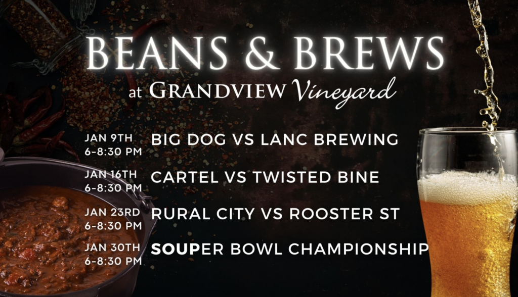 This year we have 6 breweries facing off on 3 different nights, bringing us the best Chili and Beer in the area…and YOU get to vote and determine the winner! Come enjoy chili, beer, and live music. We will be hosting a championship SOUPer bowl again on January 30th featuring the winning brewery from each week facing off with their winning beer and a soup of their choice.